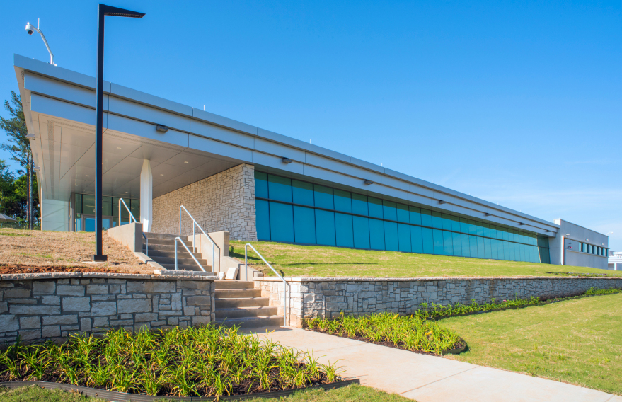 As part of a design-build partnership, Turner was the prime contractor for the construction of three new facilities for the Terrorist Explosive Device Analytical Center (TEDAC) on the Redstone Arsenal campus. The project involved the construction of three buildings: a 28,500-sq. ft. collaboration center, a 600-sq. ft. visitor screening facility, and a 25,500-sq. ft. repository. Redstone Arsenal is a highly secure site. Each new building is anti-terrorism force protection compliant with physical security design features including blast-resistant exterior windows and precast panels, and an air-barrier system. The project also encompassed the site development of 10 acres.